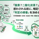2026年1月23日 / 最終更新日 : 2026年3月26日 wpmaster 光合成・呼吸・蒸散がごちゃごちゃ→“出入りする物質”と“条件”で整理 中学受験理科/生物 テーマ:暗記量を増やさず「混線」をほどく整理 悩み起点 出入りする物質で整理 条件(光・葉・気孔)で判定 実験問題につなぐ 光合成は酸素が出る? 二酸化炭素が出る? 呼吸と何が違う? 蒸散は呼吸の一部 […]