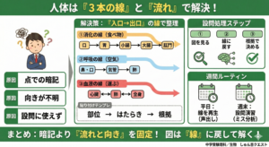 | 週末(30〜45分) | 実験問題を2〜3問。誤答は対照ミス/差ミス/理由ミス/単位ミスに分類し、 同じ種類のミスを1つ減らす。 |