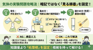 • 溶解度グラフで止まる場所(読む/判断/計算)の切り分け
