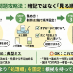 2026年1月23日 / 最終更新日 : 2026年2月27日 wpmaster 水溶液が覚えられない→分類(性質)→代表例→実験での問われ方 中学受験理科/化学 テーマ:水溶液は「名前暗記」ではなく「分類→代表→実験での見分け順」を定着させる 悩み起点 分類(性質)で整理 実験での問われ方 家庭で回す 代表例を覚えたつもりでも、テストになると混ざってしまう。 […]