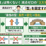 2026年1月22日 / 最終更新日 : 2026年2月27日 wpmaster 過去問を回しても点が伸びない(直前期)→失点分類→優先順位→1週間の回し方 中学受験理科/直前期 テーマ:過去問の回し方を「点の落ち方→優先順位」で組み直す 悩み起点 過去問を回しても伸びない 点の落ち方の分類 1週間の組み立て 過去問は回しているのに、点が上がらない。 間違い直しに時間を使うほ […]