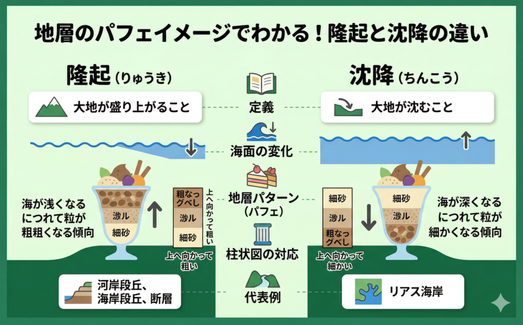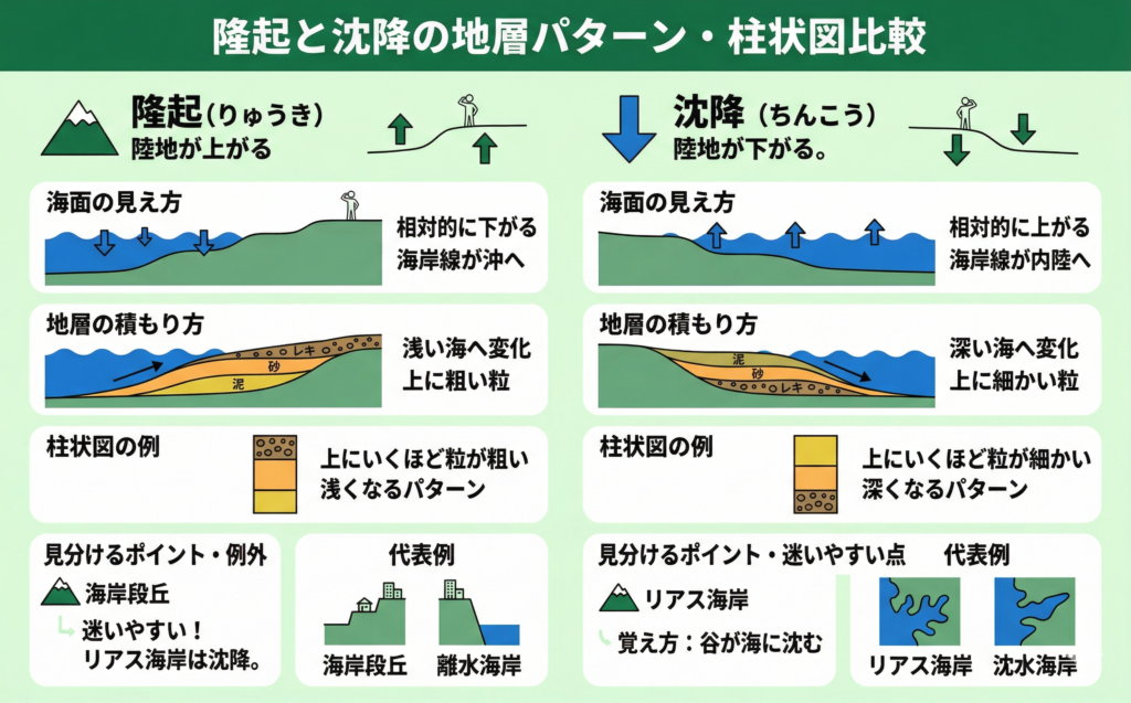 隆起とは?沈降との違い|地層・柱状図・堆積岩まで(中学受験理科)【理科のコツ】